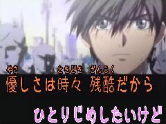 ヒロミンのライブ予習を兼ねて2つほど。そしたらどちらも歌われなかった…orz。「風の中の青い鳥」は仕方ないとしても「Zwei Worter」も歌われなかったのはちとショック。ちなみに「ZERO」は歌ってくれました。まあライブのことはまた後でということで。「Zwei Worter」は作るのも大変だったし、歌うのも大変。英語にダサカタカナテロ入れちまったよ。それでも歌える自信ないっす。あと前回作った「ZERO」を字幕再調整。「Zwei Worter」で鍛えられた後だから、比較的満足のいくものが作れました。そのうち再挑戦してみます。早ければ今日ですが…