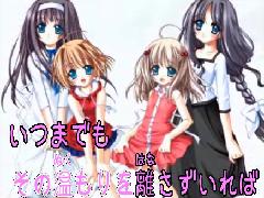 前回やった音源のみ持込の中から、作りたい欲求に駆られたもの上位3つを作成。「ホエホエ」は某所でリプレイが見つかったのでそのまま拝借。間奏のセリフもバッチリなのでテロつけてみる。…ちょっとウザイかも。「友達以上恋人未満」は最初ソロ考えてたんですけど、ツインがあったので、それにそって作成。この曲は結構好きな人多いので、そのうちセッションお願いできるかもしれないなと期待。「桃天使99」は映像作らなきゃならないかなと思ったら、専用に作ったものが某所にあったのでそれを元に。これは今の所ソロのみしかないけど、誰か知ってる人いたらツインも作ってみようかな。