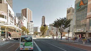 手前がエキスポセンターで、奥の高いのが三井ビルだとするとその右手は多分ジャスコ。イオンじゃないよ