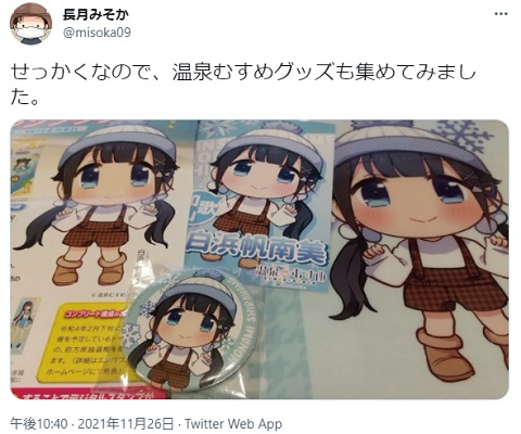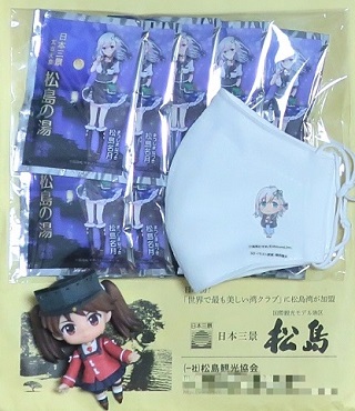 松島デジタルスタンプラリー景品当たった。名月ちゃんのマスクは欲しかったのでそれはヨシとして…温泉の元10個どうすんべ。うち自宅ではシャワー派やねん。まあ腐るもんでもないし、のちのち旅行行った先でバッジと一緒に配ろうかな。