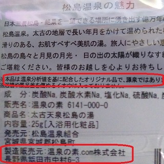 名月ちゃんの素の袋見た結果…源泉ではないと思ってたけど、まさか宮城のものですらないとは。