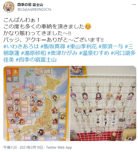 →結局、草津結衣奈ちゃんまで全六か所の販売決まる→ちぇ、チェーン履けば冬でも回れるし(アクスタ物欲がわずかに下がる)
