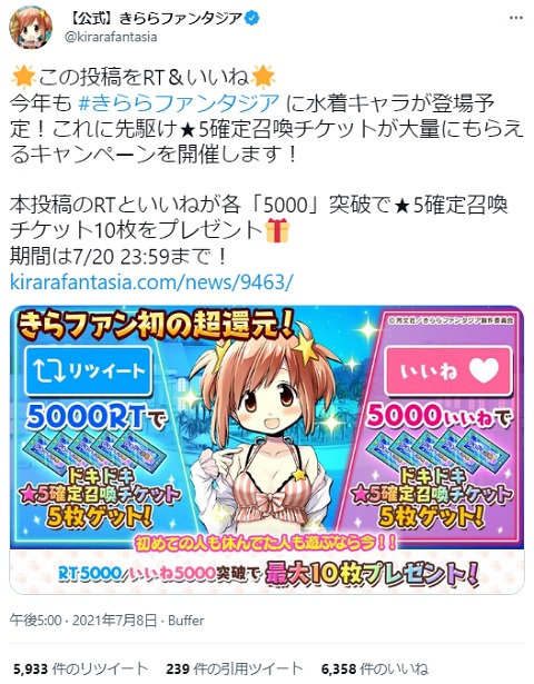 今日、きらファン私的三年目に突入したので記念に☆5確定ガチャ回すかと思ったら、キャラ指定できた。