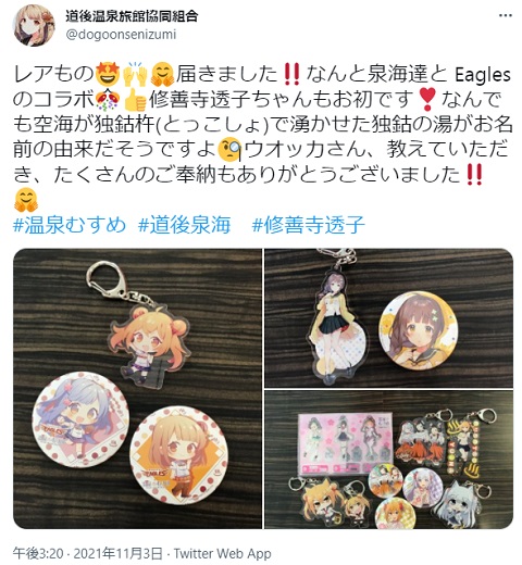結局、神田明神朗読劇イベで配布予定だったアクキーは7種とも販売されることになったんだな。7種コンプ(飯坂、いわき、草津、有馬×2、黒川、雲仙)する人とか今年中に現れそうだわ。