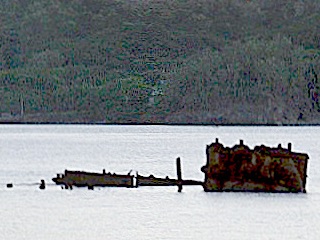 そのままぐるっと半周して、扇浦まで。無心で走ったら30分かからなかった。やっぱ狭いなこの島。で、この扇浦は「青の章」の聖地です。結構頻繁に出てきます。なぜここが聖地と特定できたかというと、「青の章」に出てきた海岸はいつも傍に沈没船があったから。前述のように小笠原は戦場になったところなので軍艦の沈没船が結構あります。ただ、それが海面出ている場所というとここしかないわけで…てなわけでラストショット。思ったよか船の形を残していなかったのは残念だけど、将来完全に沈むらしいので、まだ見えるうちに見れてよかったということで。