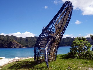 宿について宿帳書いて、まずすることは…日焼け止め塗りだね。いや、快晴だとは思ってたけどなんだこの暑さは?ホントに今秋か?それくらい日差しが強い。宿の人に訊いたら、日焼け止め塗らないで外に出たら、赤くなるどころかヤケド状態になるよという答えもあながち誇張じゃないくらい強い。ということで念入りに塗る。そしてレンタバイク屋に行って、バイク借りて、早速父島観光めぐりです。
