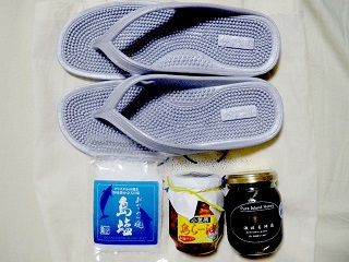 でもその認識は間違いなくて、確かに父島のお土産やさんに並べられていました。しかも目立つところに。ではなぜ母島で「ギョサン」を買うのか?それは宿の人に情報を貰ったから。その情報とは父島で売っている「ギョサン」はお土産用のもの。「真のギョサン」は父島じゃ売ってない。母島のみだというもの。「真のギョサン」ってなに?と訊いてみたところ、かかとのところまで突起が張っていて、靴底はエアーの穴が空いているものらしい。なるほど確かに、父島にあったのはかかとがツルツルで、靴底に穴は空いてなかった。で、なんで母島でしか売ってないの?と訊いたらそれは知らないとか言われた。なんか一気に胡散臭くなったけど、確かに母島の「ギョサン」は「真のギョサン」でした。ということで購入…の前に実は写真撮る前に店の人に許可を貰いました。いや売ってた場所が完全に店内だったのでな。