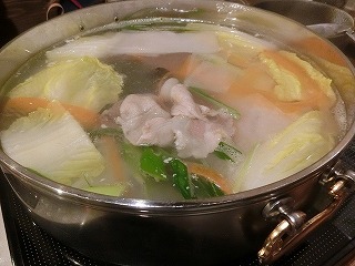 温泉堪能した後は夕食。今日もしゃぶしゃぶ。タレがポン酢でなくそばつゆ。あっさりしてるので豚肉の味がそのまま来ていい感じ。