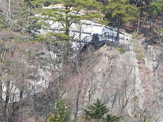 橋を渡って、洞窟を抜けると立派な社殿が…あれ?