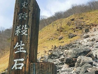 殺生石と言えば九尾の狐こと玉藻の前の話ですね。死んでもなお毒ガス出しまくるとははた迷惑なやつだと、当時鼻をつまんで歩いた記憶がありますよ。